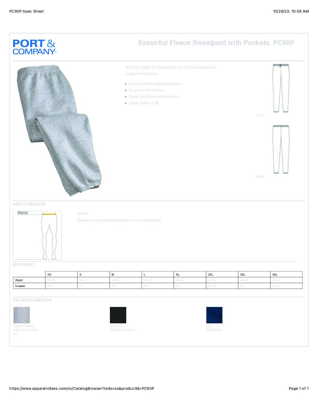 - Elastic waistband and cuffs