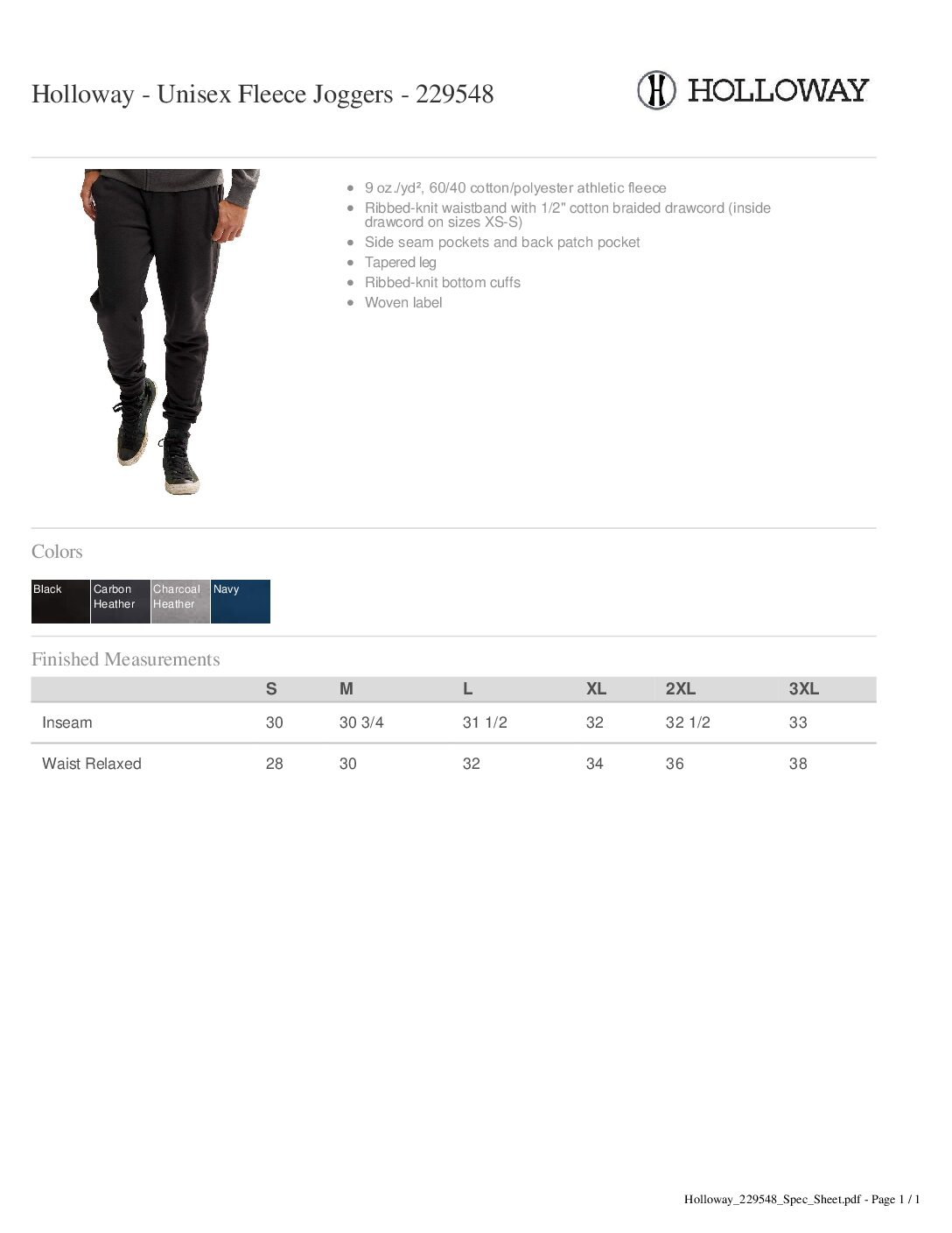 - Elastic waistband and cuffs